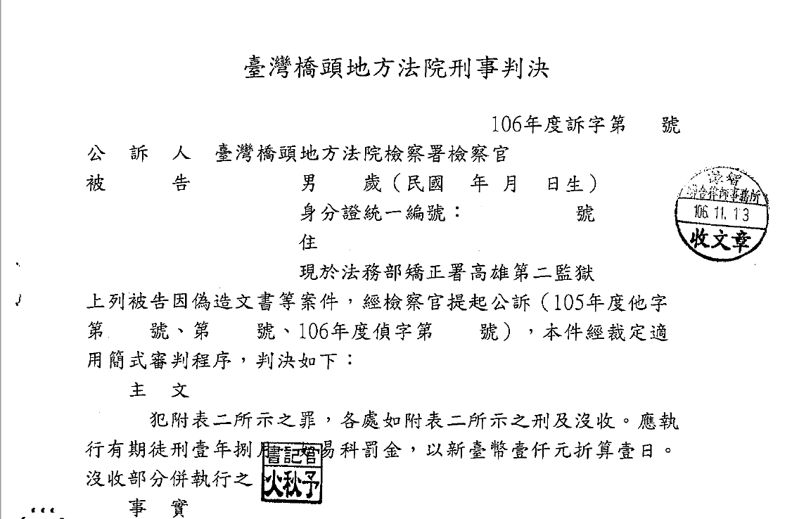 高雄律師推薦張清雄(07)2728828-客戶提告偽造文書勝訴案例