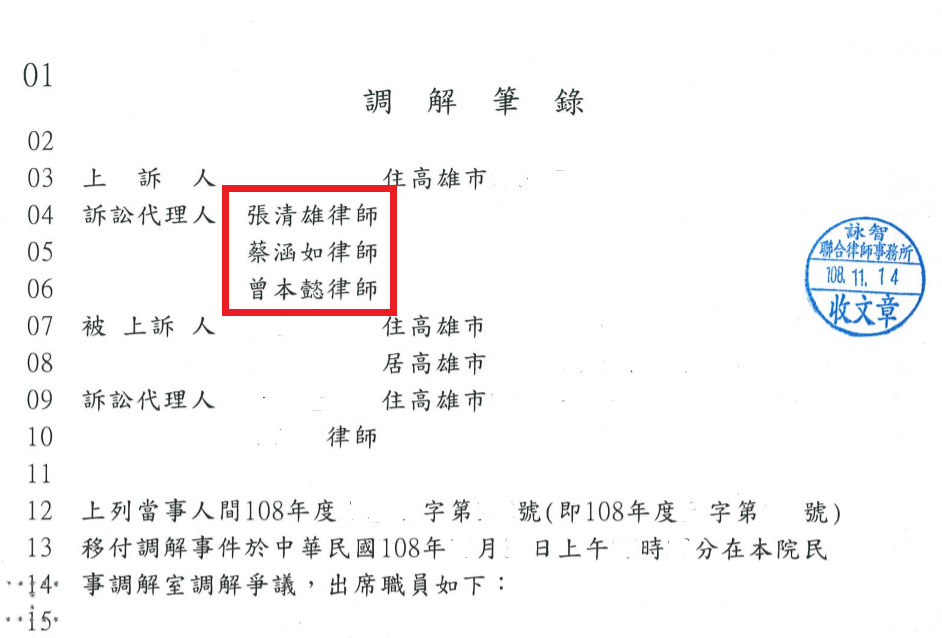 高雄律師推薦張清雄-客戶侵權行為損害賠償事件調解成功案例
