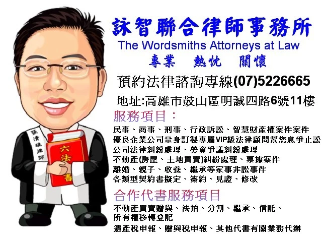 高雄律師事務所法律諮詢預約電話(07)5226665屏東律師台南律師高屏律師訴訟團隊工商憑證認證商務平台法律顧問-詠智聯合律師事務所 張清雄律師網站:http://www.law888.tw